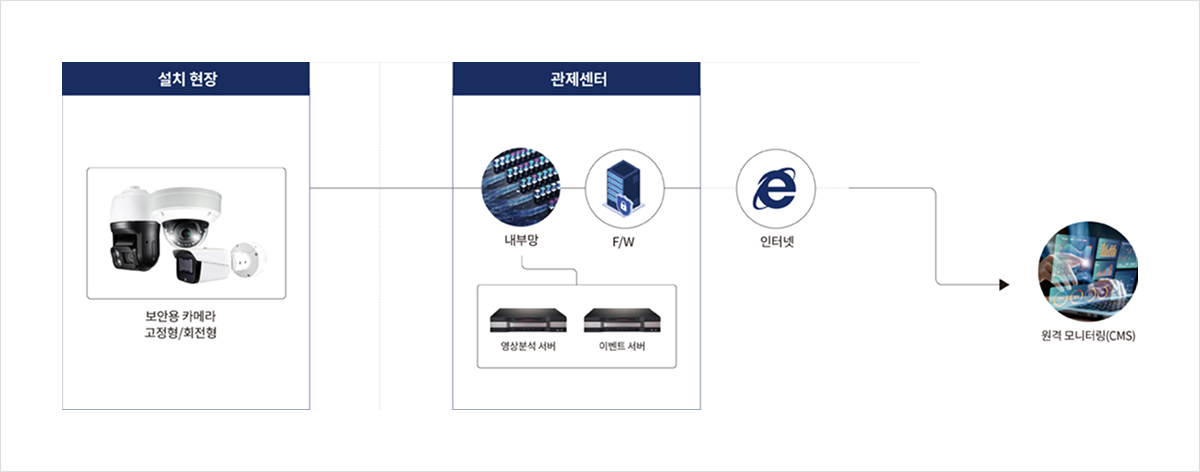 안전과 보호에 중점을 둔 인공지능 기반 시스템으로 침입·배회·차량·객체 등 다양한 상황을 실시간으로 자동 분석하고 정보를 체계적으로 저장하여 이상 상황을 신속하게 감지·대응하며, 축적된 데이터를 활용한 효율적인 영상 검색과 사후 분석을 지원해 보다 정확하고 효과적인 감시 환경을 제공합니다.